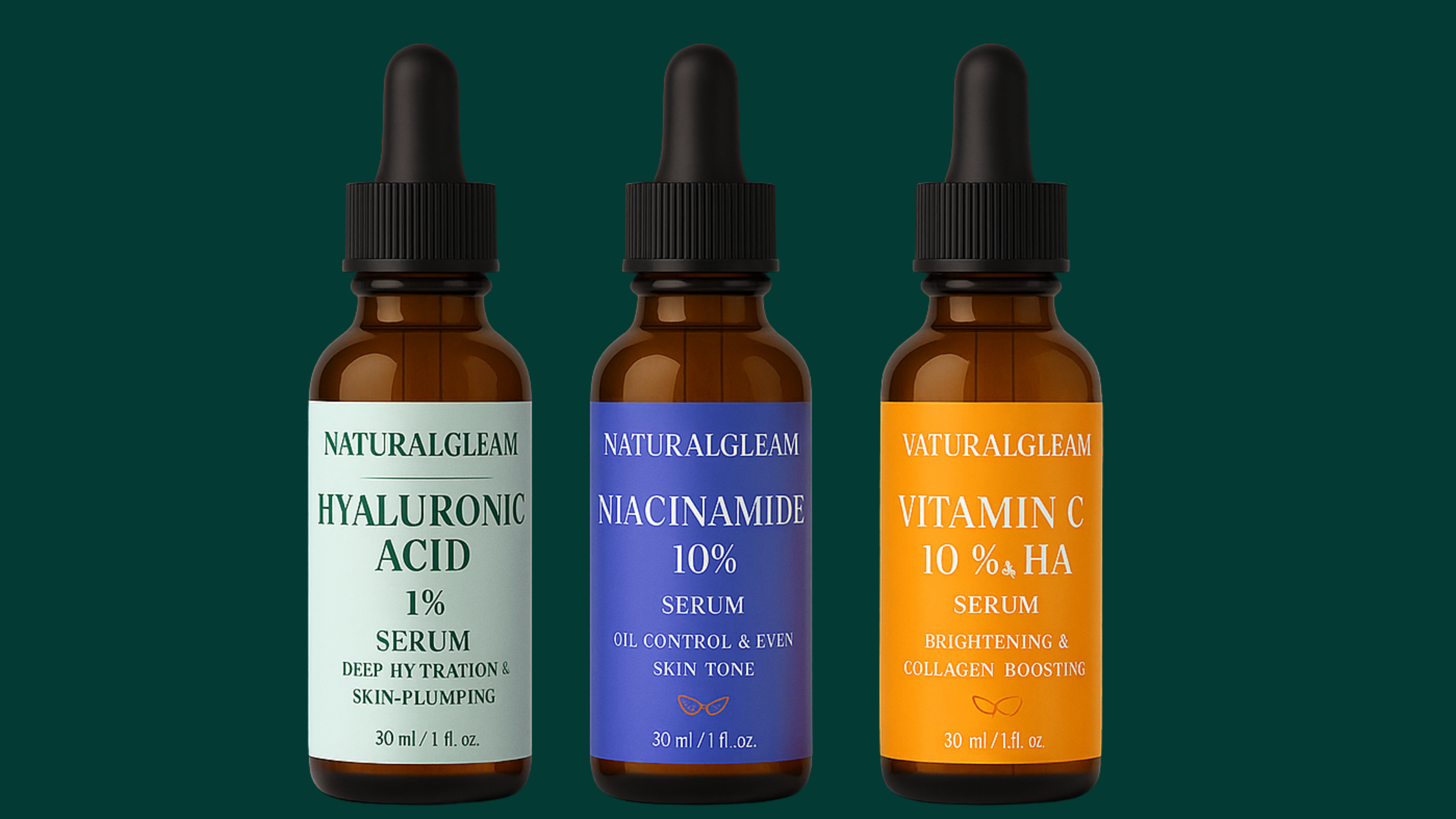 Hydrate, balance, and brighten your skin with this powerful trio — featuring Hyaluronic Acid, Niacinamide, and Vitamin C serums for a naturally radiant, healthy glow.